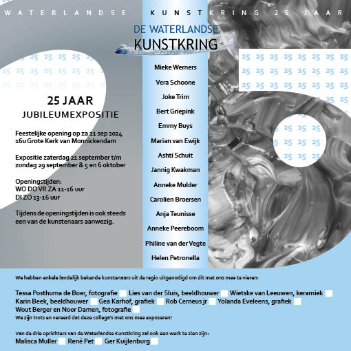 Deze tentoonstelling is een presentatie van alle leden van de Waterlandse Kunst Kring.