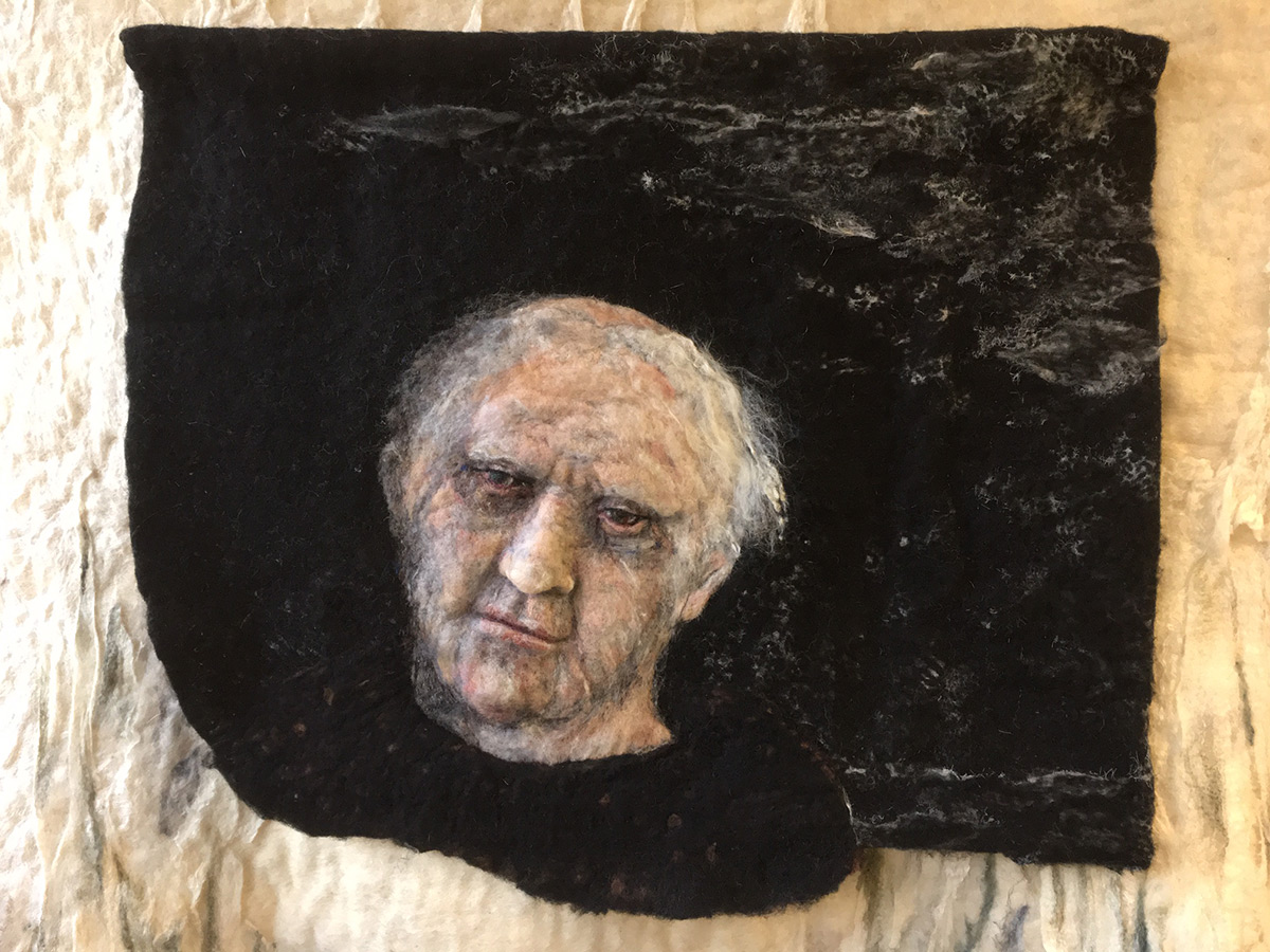 Twee dagen later! Opnieuw er drie uur aan gewerkt, nek is beter nu. Licht in mijn atelier is anders. Ach, een ander ziet het waarschijnlijk niet. Belangrijk blijft dat het in het echt wordt bekeken en niet op een foto!